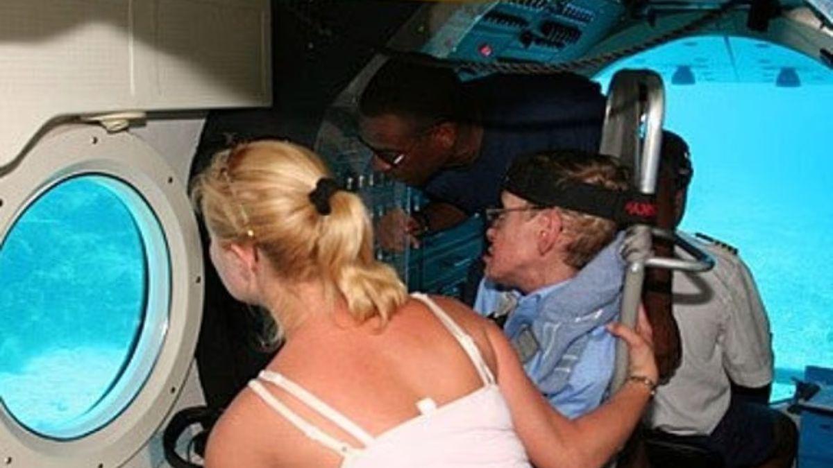 Одно из фото, вероятно, сделано во время научного симпозиума на Сент-Томасе в 2006 году, куда Хокинг приезжал с докладом. Участников тогда возили на остров Эпштейна Литл-Сент-Джеймс на барбекю и экскурсию на подводной лодке, специально адаптированной для инвалидной коляски учёного. На другом снимке видно, как молодая светловолосая женщина помогает Хокингу.