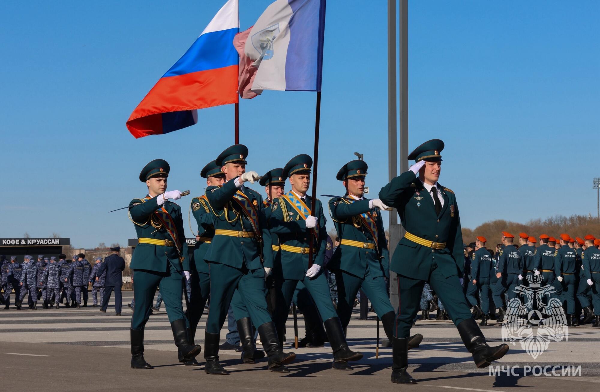 Первая в этом году тренировка парадных расчетов состоялась в Великом Новгороде. В ней участвуют сотрудники МЧС, силовых ведомств, образовательных учреждений и других организаций.